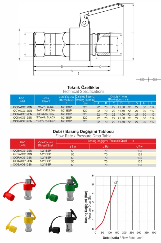 Vida ölçüsü 1/2″ BSP olan QCAC Serisi Hidrolik Yaylı Kapaklı Otomatik Rekorların en önemli özellikleri dişi gövdede kapak üzerine monte edilen darbeye dayanıklı otomatik bir yaylı toz koruma kapağına sahip olmalarıdır.